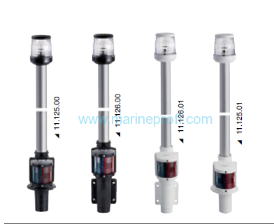 Bílé vrcholové světlo 360° v kombinovaném provedení s pozičními světly - červená, zelená. V bílé nebo černé barvě. S dvěma možnostmi uchycení (viz obrázek).  Délka 100cm. Každé světlo je včetně žárovky. celý popis